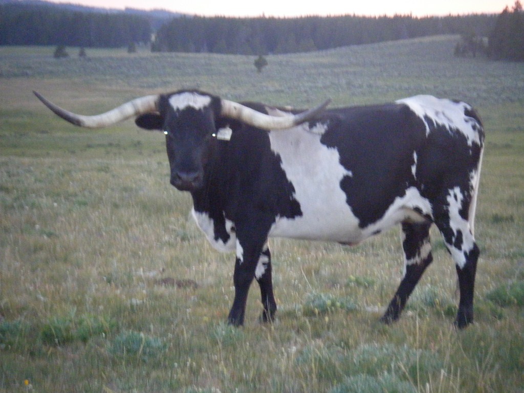 Wild colored black and white paint cow.She froze one horn and broke several inches off.Great producer.The mother of Saddlehorn and Panhandle Slim.