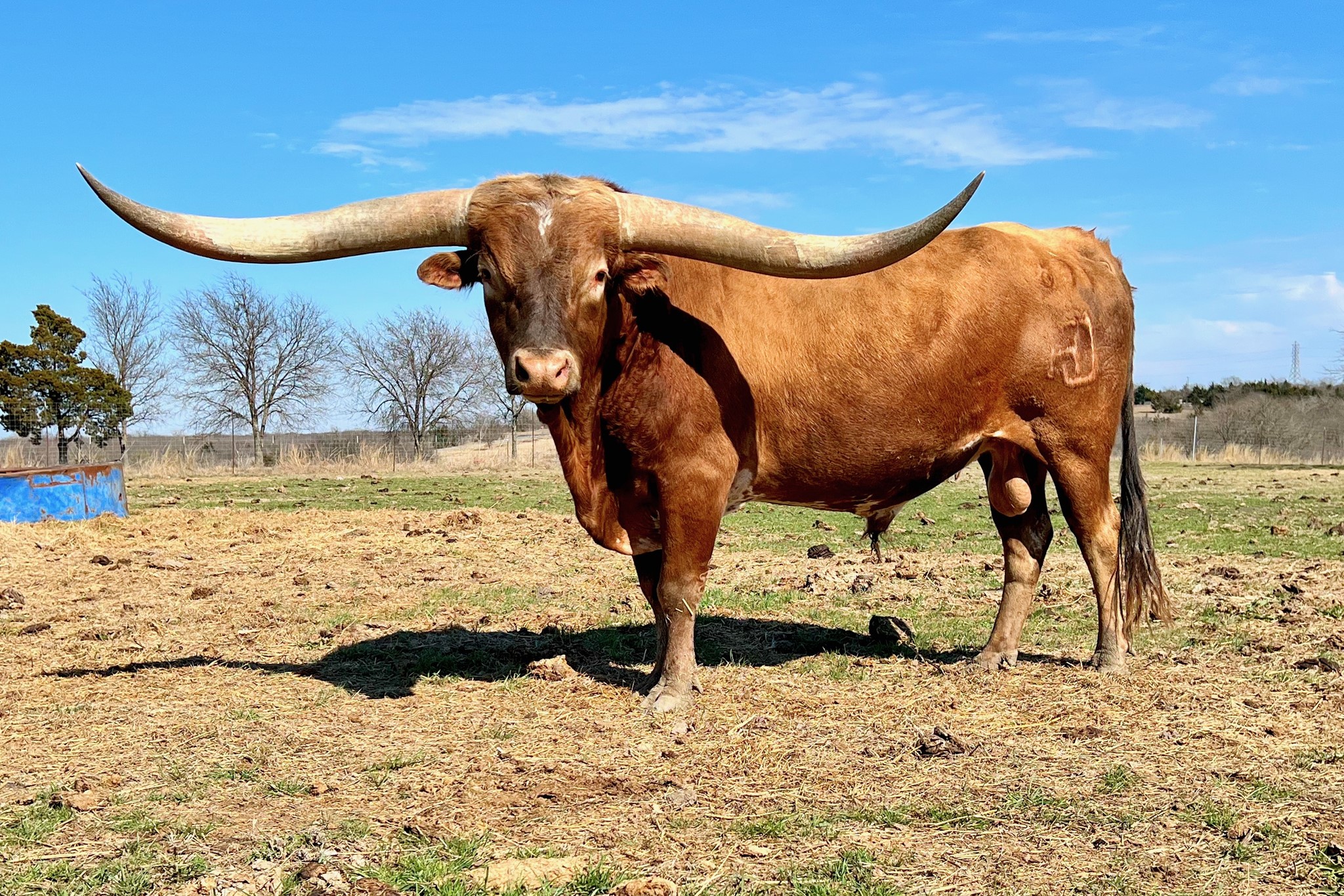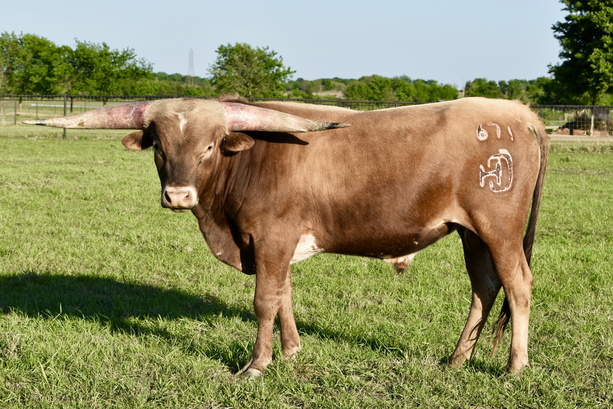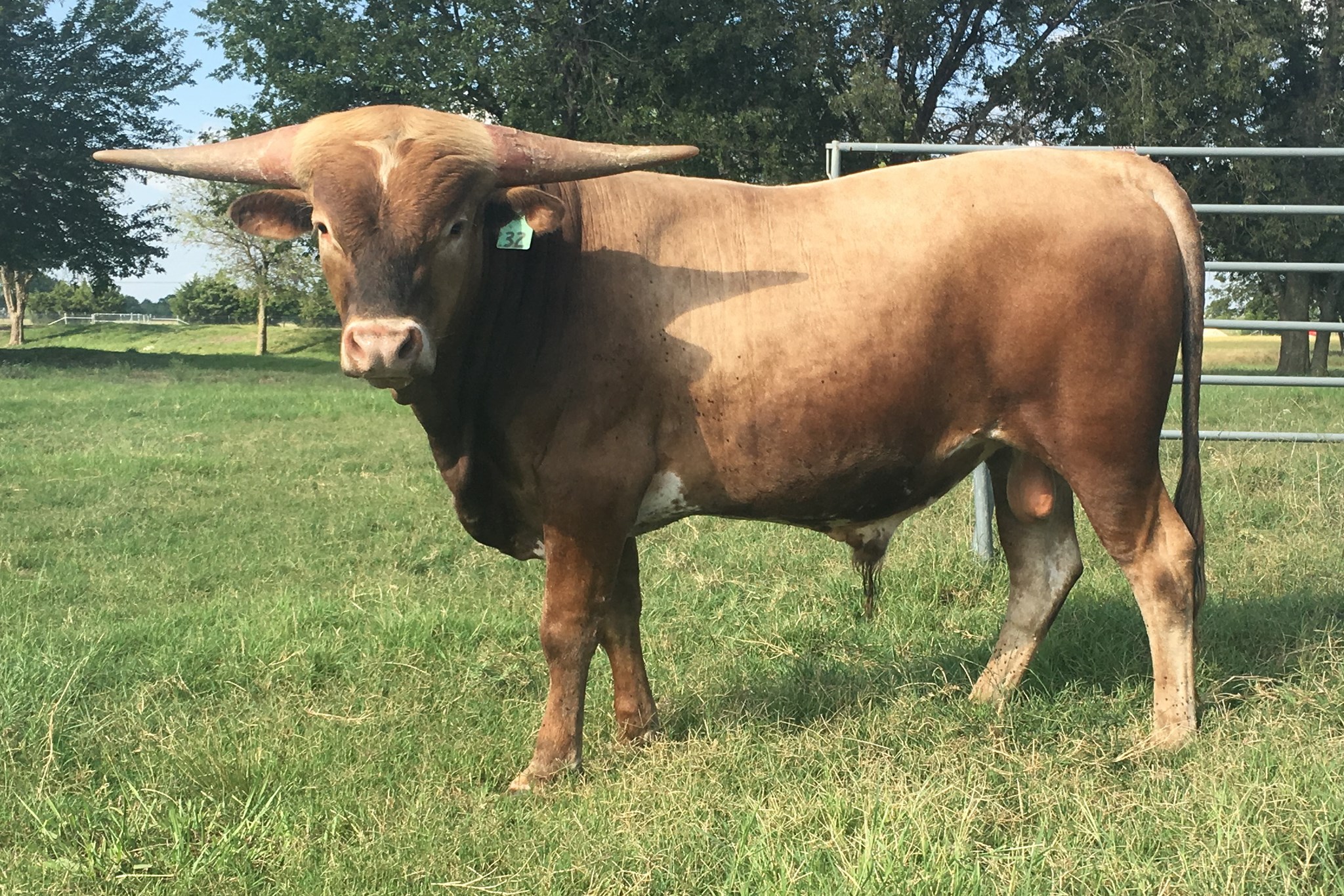 Sired by the great proven "Cowboy Casanova", this fine Herdsire's dam is the "Legendary" "D/0 Miss Grande" who was sold at Public Auction for well over $100,000 and has produced numerous "Cash Cow" offspring at public auction as well as private Treaty. He is the Full Brother to $165K "Helm Miss Impressive 512" 100" ttt and has now produced (3) Cash Cow Offspring thru Private Treaty and Public Auction. "Stone Red" is well balanced from horn to hip and has now produced a number of high selling females in Public Auction and Private Treaty. This Bull produces color, conformation and great horn. He has it All. Although not a "Gigantic Bull" "Stone Red" structurally is a very well built bull. Great Hip, Straight Back, Clean below, Perfect Testicular Structure, Great Feet and Great Horn. He will correct larger cows with conformation concerns but he is also sized correctly to pair with the best of heifers in your herd. Great Disposition and Pedigree, Proven breeder.