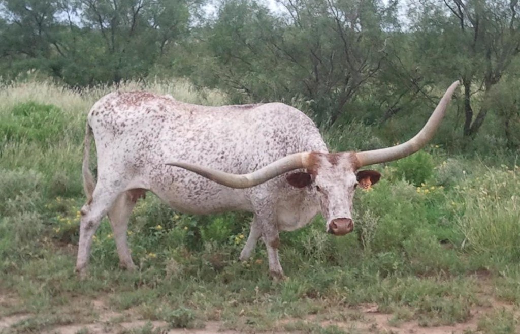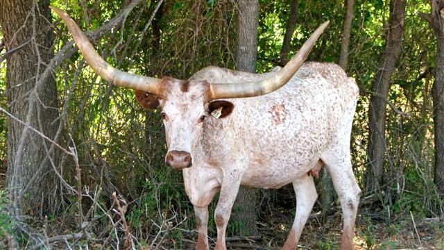 What a cow going to our donor program after she has her Smok'N calf over 72" t2t and 94" th. She is the dam of Grill who is also in our donor program.Thick horn all the way out to the tips.